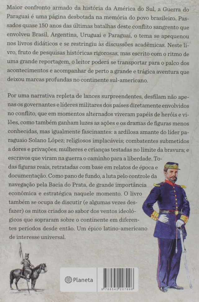 Um épico latino-americano de interesse universal. Maior confronto armado da história da América do Sul, a Guerra do Paraguai é uma página desbotada na memória do povo brasileiro. Passados quase 150 anos das últimas batalhas deste conflito sangrento que envolveu Brasil, Argentina, Uruguai e Paraguai, o tema se apequenou nos livros didáticos e se restringiu às discussões acadêmicas. Neste livro, fruto de pesquisas históricas rigorosas, mas escrito com o ritmo de uma grande reportagem, o leitor poderá se transportar para o palco dos acontecimentos e acompanhar de perto a grande e trágica aventura que deixou marcas profundas no continente sul-americano. Por uma narrativa repleta de lances surpreendentes, desfilam não apenas os gover...