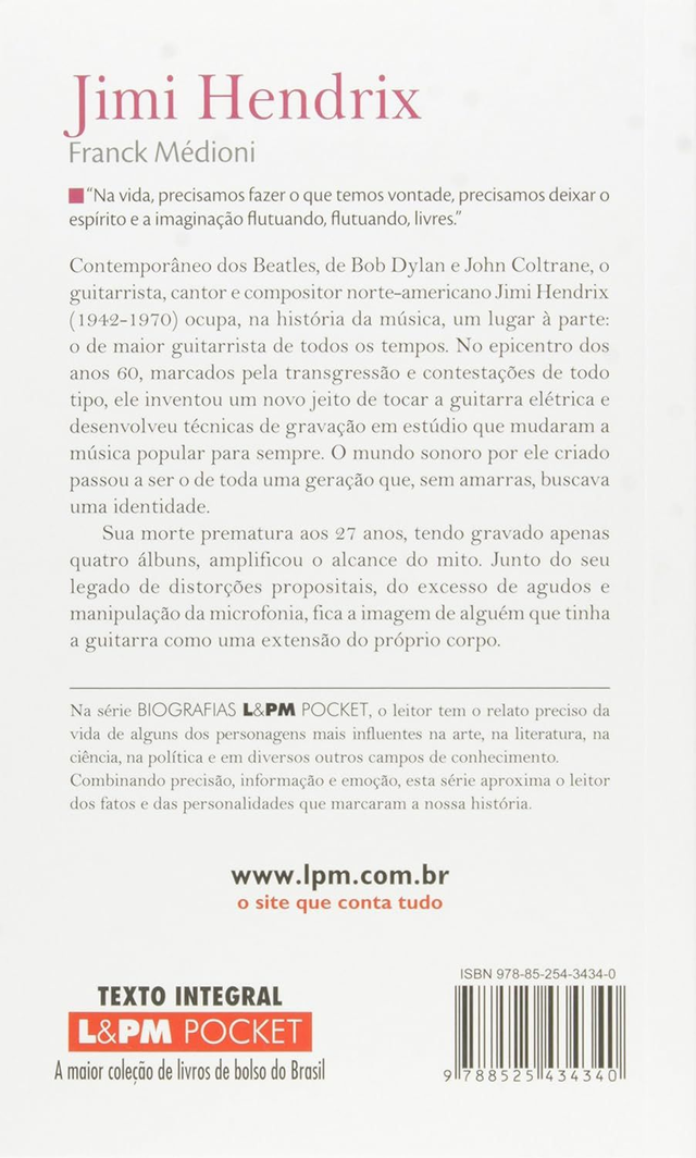 Na vida, precisamos fazer o que temos vontade, precisamos deixar o espírito e a imaginação flutuando, flutuando, livres.´ Contemporâneo dos Beatles, de Bob Dylan e John Coltrane, o guitarrista, cantor e compositor norte-americano Jimi Hendrix (1942-1970) ocupa, na história da música, um lugar à parte: o de maior guitarrista de todos os tempos. No epicentro dos anos 60, marcados pela transgressão e contestações de todo tipo, ele inventou um novo jeito de tocar a guitarra elétrica e desenvolveu técnicas de gravação em estúdio que mudaram a música popular para sempre. O mundo sonoro por ele criado passou a ser o de toda uma geração que, sem amarras, buscava uma identidade. Sua morte prematura aos 27 anos, tendo gravado apenas quatro álbuns, amplificou o ...