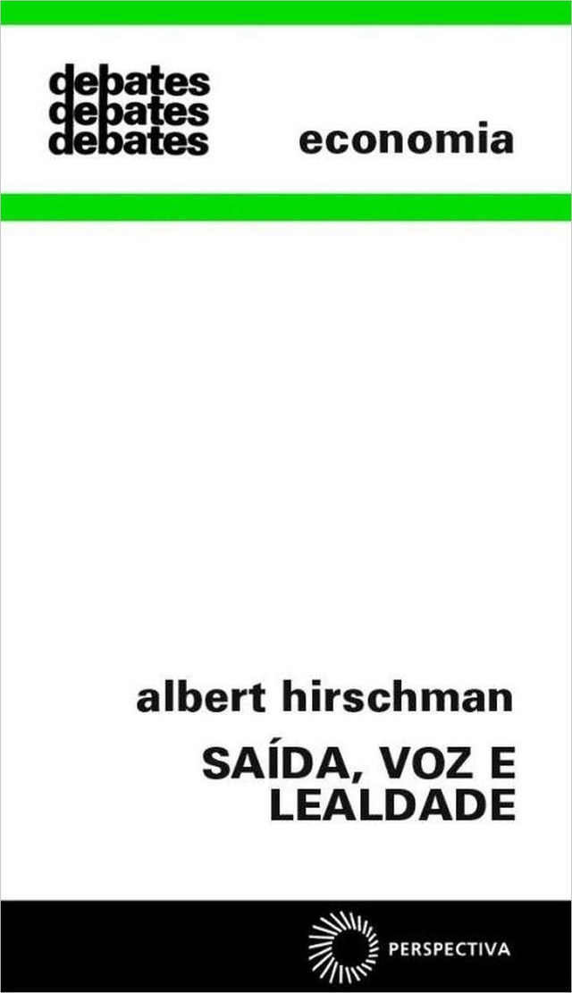 Albert O. Hirschman é professor de Economia Política em Harvard e sua obra se caracteriza por uma visão original e nova dos problemas ligados à sua especialidade. O presente título trata de forma integrada, através de um esquema muito simples, questões de ordem social, econômica e política e o seu maior interesse reside justamente na exposição de como mecanismos de mercado interatuam ou se excluem pertencendo ambos tanto as firmas como aos órgãos políticos e sociais. Transporte na Nigéria, ação sindical da CIO-AFL, Halph Nader, hippies, Poder Negro, sistemas competitivos, monopólios, duopólios, preço versus qualidade, bipartidarismo, constituem alguns dos itens desta obra, organizados e discutidos de forma a imprimir novo alento ao pensamento científico e sócio-econômico atual.