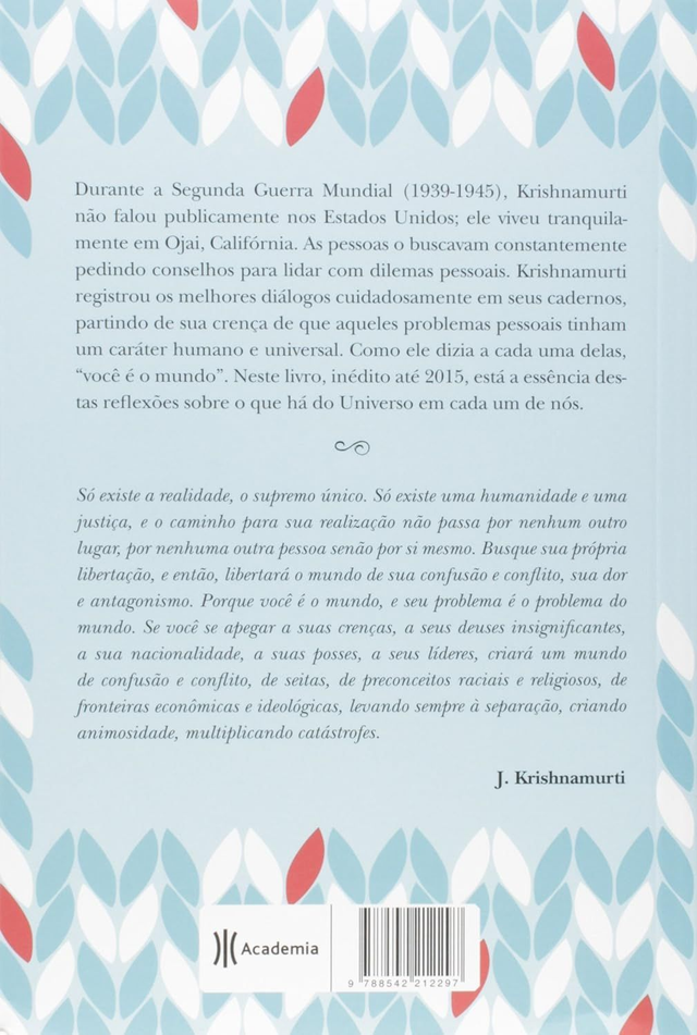 Livro inédito de Krishnamurti Durante a Segunda Guerra Mundial (1939-1945), Krishnamurti não falou publicamente nos Estados Unidos; ele viveu tranquilamente em Ojai, Califórnia. As pessoas o procuravam para dialogar sobre muitos temas da época, ou sobre seus próprios dilemas pessoais. Seus problemas eram humanos universais, e asseveravam a afirmação de Krishnamurti: “Você é o mundo”. Conforme Krishnamurti desenrolava os fios emaranhados dos pensamentos e sentimentos das pessoas, revelava-se o núcleo ou fonte de uma preocupação, sem adornos e sem culpa.